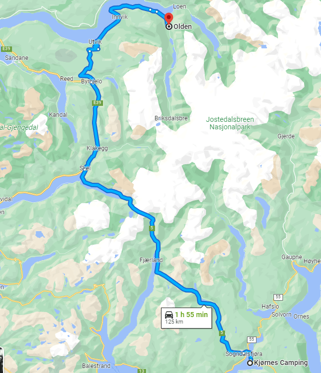 Route 11: Kjørnes Camping – Norsk BreMuseum (Gletschermuseum) – Olden – 130 km