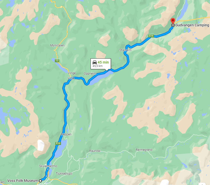 Hof Mølster im Folkemuseum Voss an. Für die Anfahrt zum Museum (60°38′00.38″N 06°24′45.6″E) schickte uns das Navi durch Seitengassen, die mit dem Womo eine Herausforderung sind. Ausserdem ist der letzte Kilometer der Zufahrt einspurig mit wenigen Ausweichstellen.