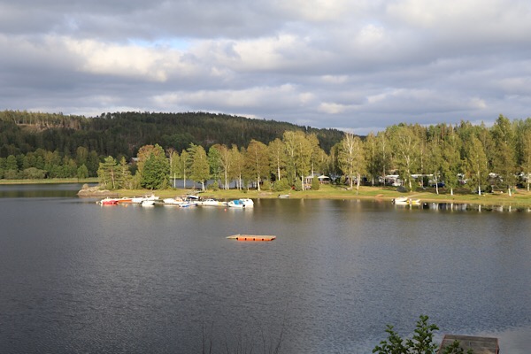 Die Angelsachen aus dem Wohnmobil hervor gekramt, Spule, Blinker, Messer und Ersatzschnur in einer Packtasche verstaut und die Angelrute an der Fahrradstange montiert. So ausgerüstet geht es zum Brunch in den Bastuvägen.