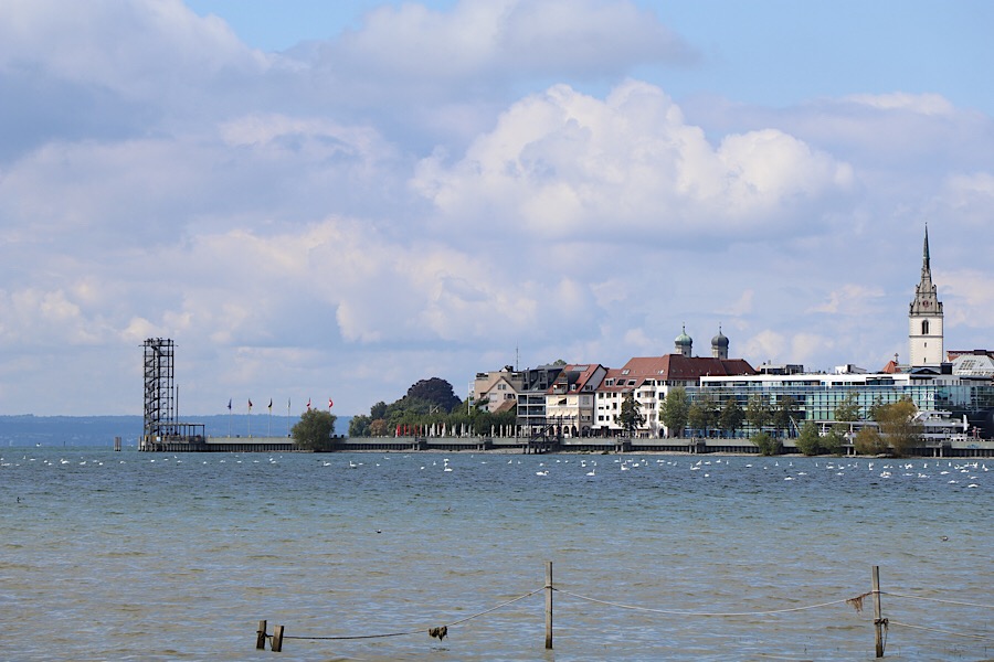 Wir starten am Campingplatz. Am Vortag hat Donna Makrella von der Touristinfo in Friedrichshafen sich die schönsten Routen angesehen und dann den Download für unsere Tour auf unsere Navis übertragen.