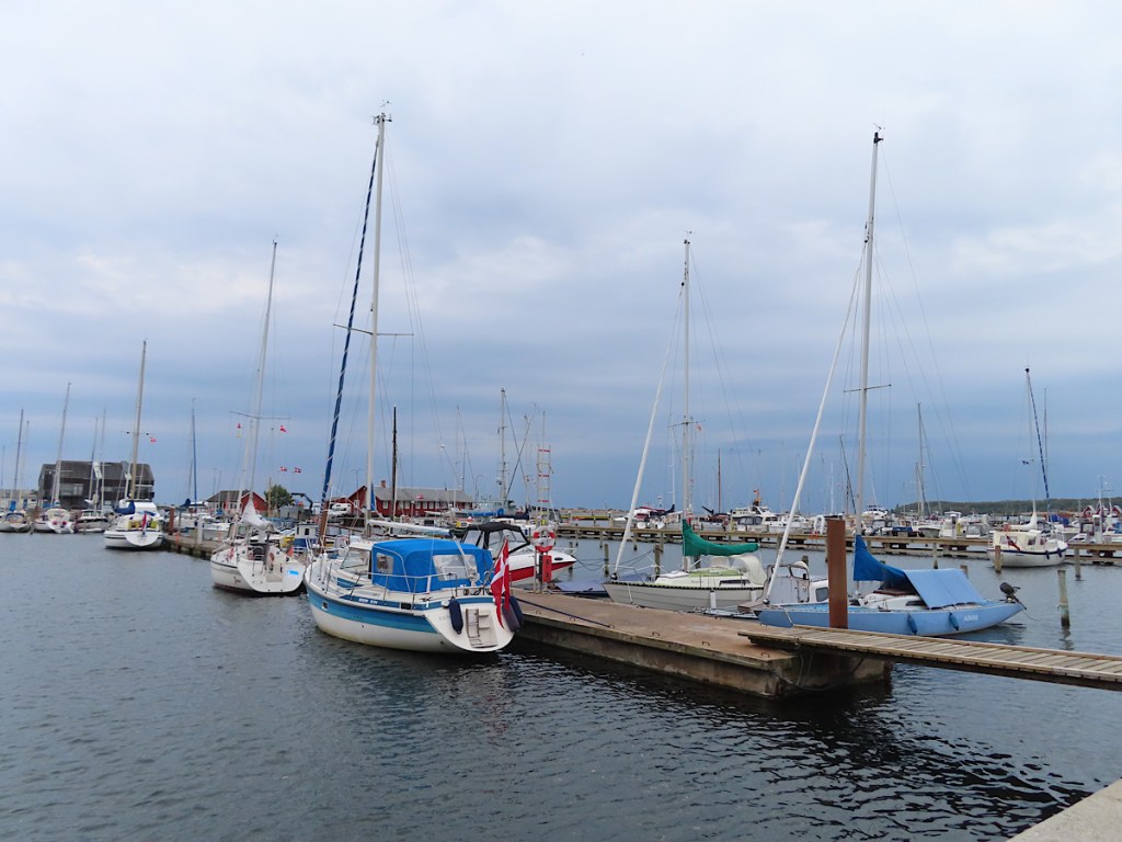 Die heutige Halbinsel Helnæs ist durch einen 2,8 km langen Damm mit dem Festland verbunden. Von unserem Campingplatz sehen wir das Leuchtfeuer „Helnæs Fyr“.