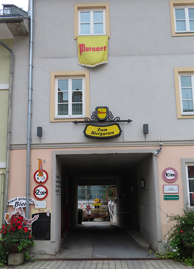 Rund um das Rathaus dominiert hier das Bier. Das Murauer Bier ist hier allgegenwärtig.
