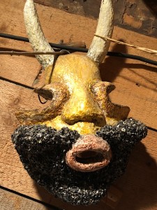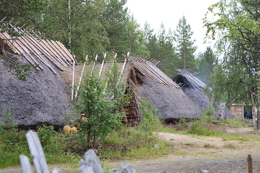 Kurz nach 11:00 erreichen wir den Tempel. Wir treten in ein scheunenähnliches Gebäude und tausend Dinge strömen auf uns ein. Rund um uns eine Ansammlung aller möglichen Fundstücke aus Vild Hasses Leben. Messer in der Art der Samen, Fellbekleidung, dazupassende Fellstiefel, Pulkas, Geschenke, die er erhalten hat, Zeitungsartikel mit ihm mit schwedischen und internationalen Persönlichkeiten, Fotobücher – all das dicht gedrängt auf mehrere Räume verteilt. Irgentwie hatte ich den Eindruck das ausgebreitete Leben eines umtriebigen Mannes liegt, hängt oder steht vor mir.