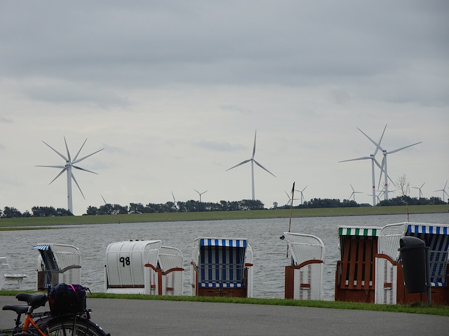 Zwei größere Geocaching-Trails liegen am Weg und werden mit unseren Drahteseln angesteuert. Wir radeln zur Leybucht, sie liegt im Westen von Ostfriesland zwischen Greetsiel und Westermarsch. Die Leybucht bildete sich nach der ersten zuverlässig erwähnten Sturmflut an der niederländischen Küste am 26. Dezember 838. Etwa 2500 Menschen fielen den Naturgewalten dabei im gesamten von ihr betroffenen Küstenbereich zum Opfer.